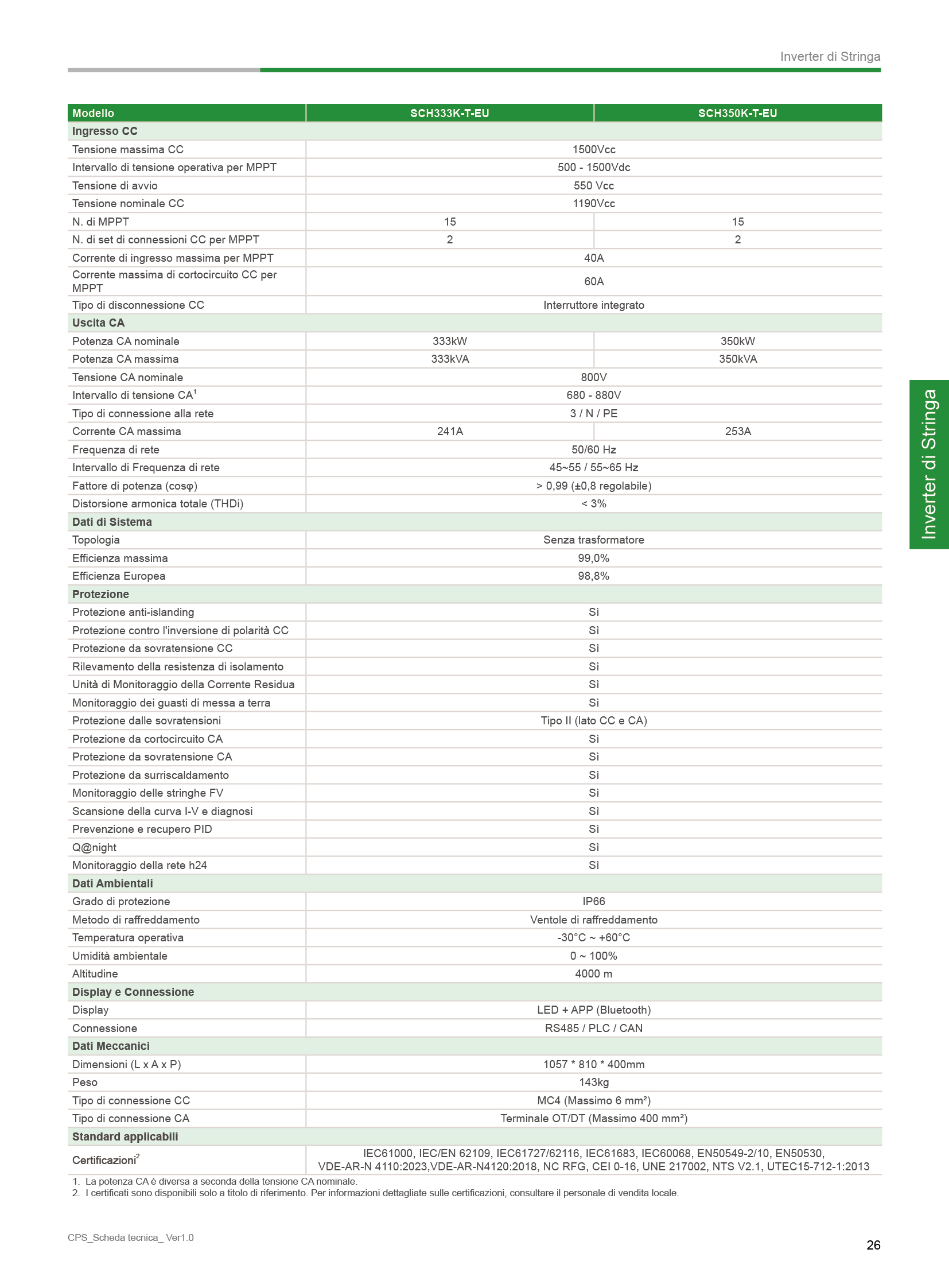 Inverter di Stringa Trifase 333/350kW • 15 MPPT • 1500Vcc