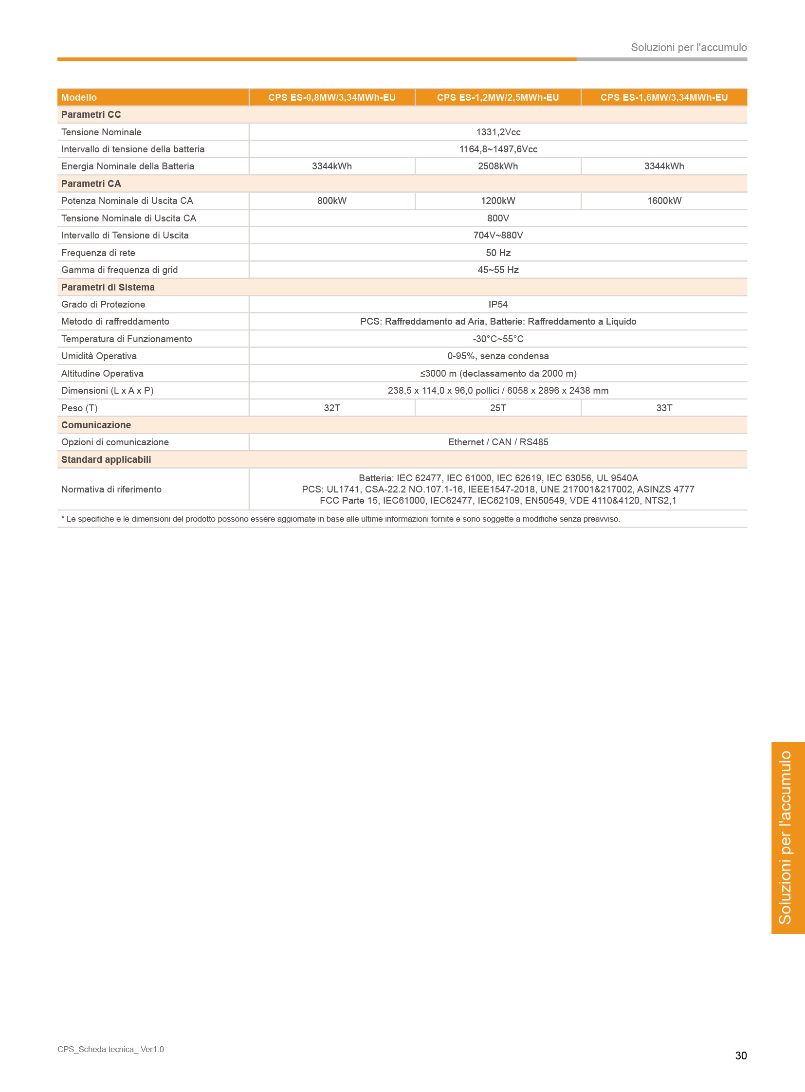 PCS modulari, 6 rack di batterie e la necessaria componentistica tutto integrato in container da 20 piedi;